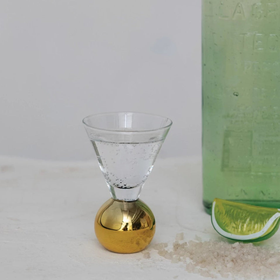1 oz. Shot Glass w/ Gold Electroplated Ball Stem