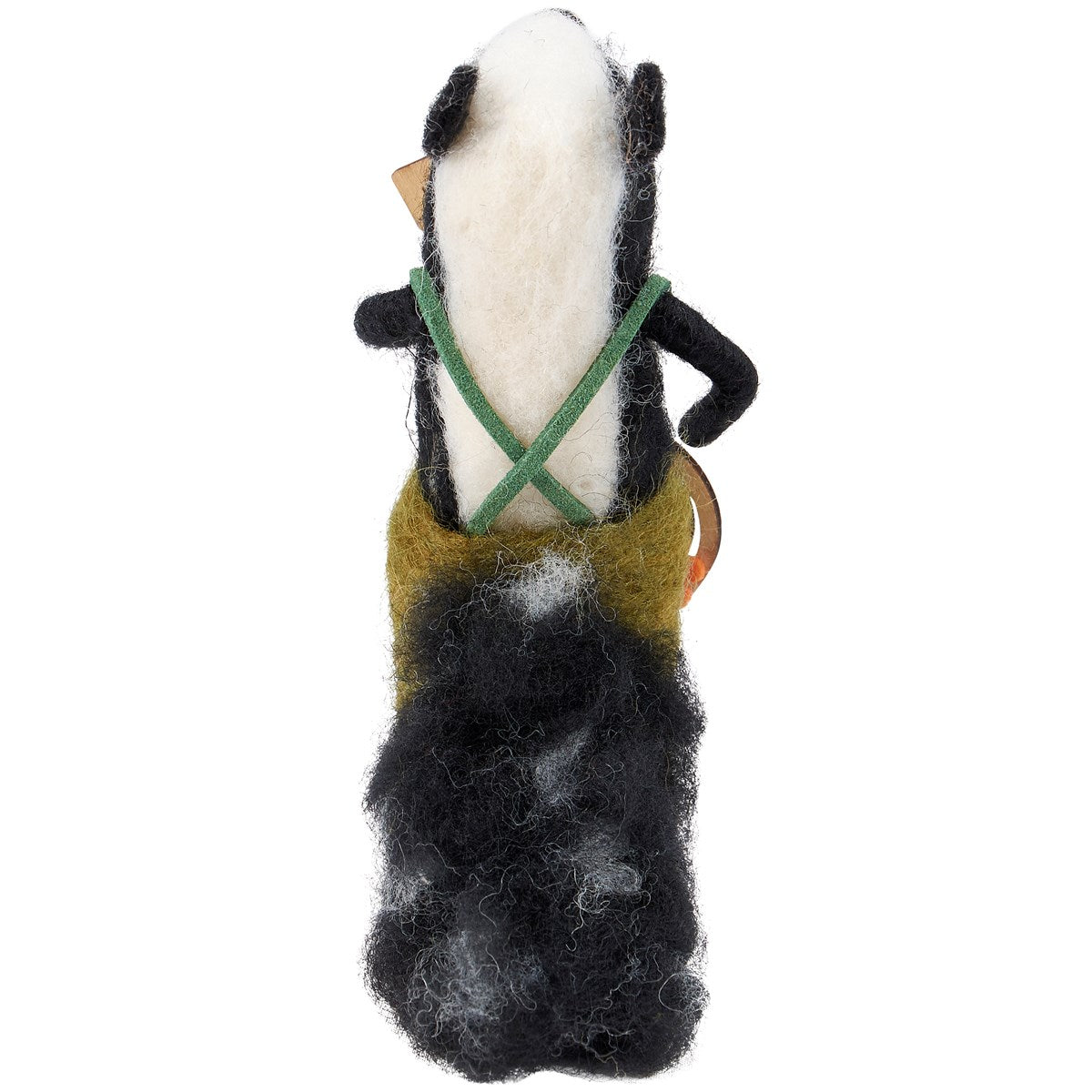 A felt critter from our Lake & Cabin Collection displaying a charming skunk with a rustic inspired design perfect for adding character to any cabin or RV. Skunk critter features cute handmade details including wooden cutout of a banjo with felt flower accents. Our Banjo Skunk critter is designed to free-stand on flat surface for display. Contains small parts; this is not a toy. A fun nature-themed home accent that displays well alone or as a collection with other critters.