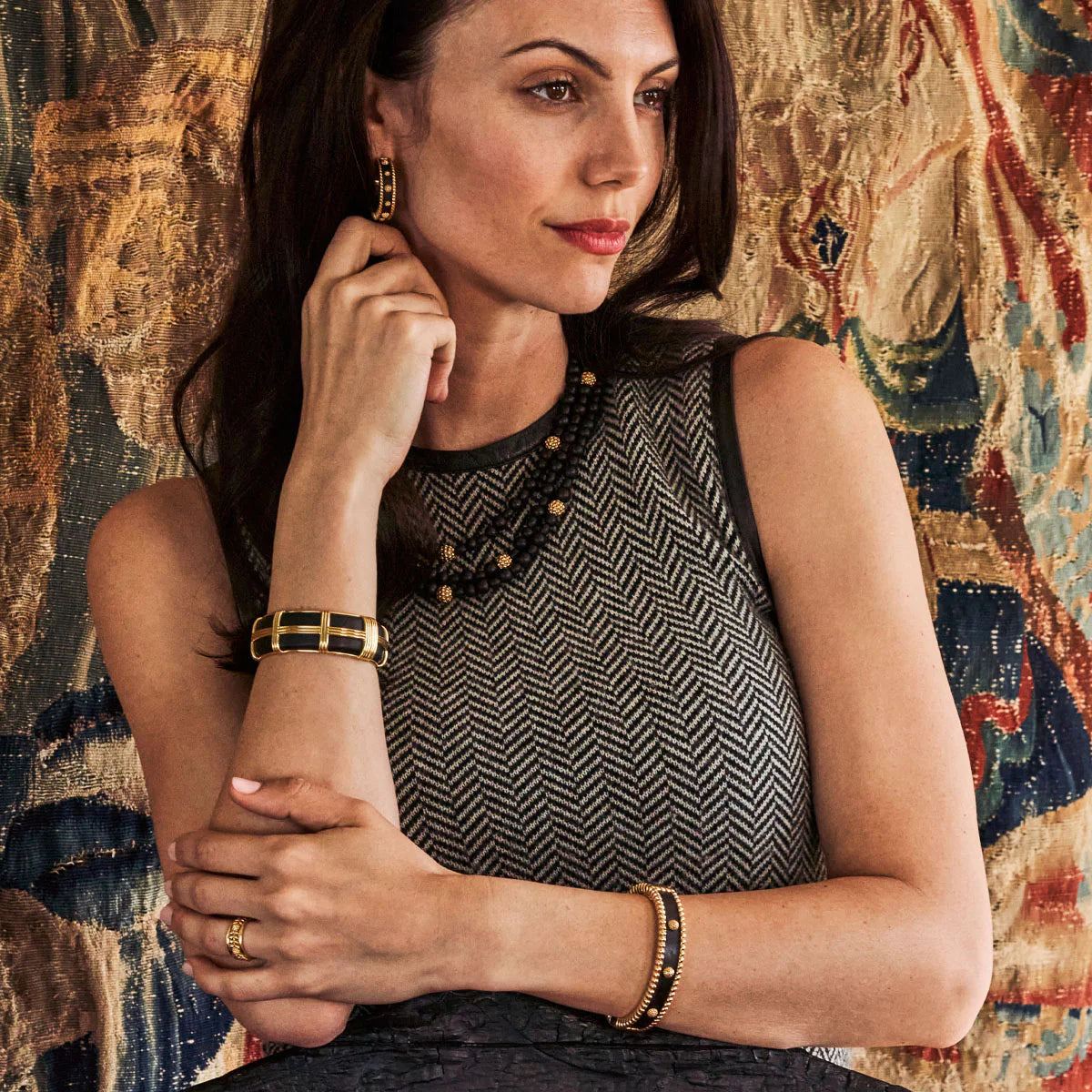 This go-to bangle is designed to mix, match, layer and stack alongside other bracelets for all the occasions and everyday adventures in your datebook. Featuring a threaded border and circumference of golden berries, this gleaming piece is gorgeous with everything—day to night.