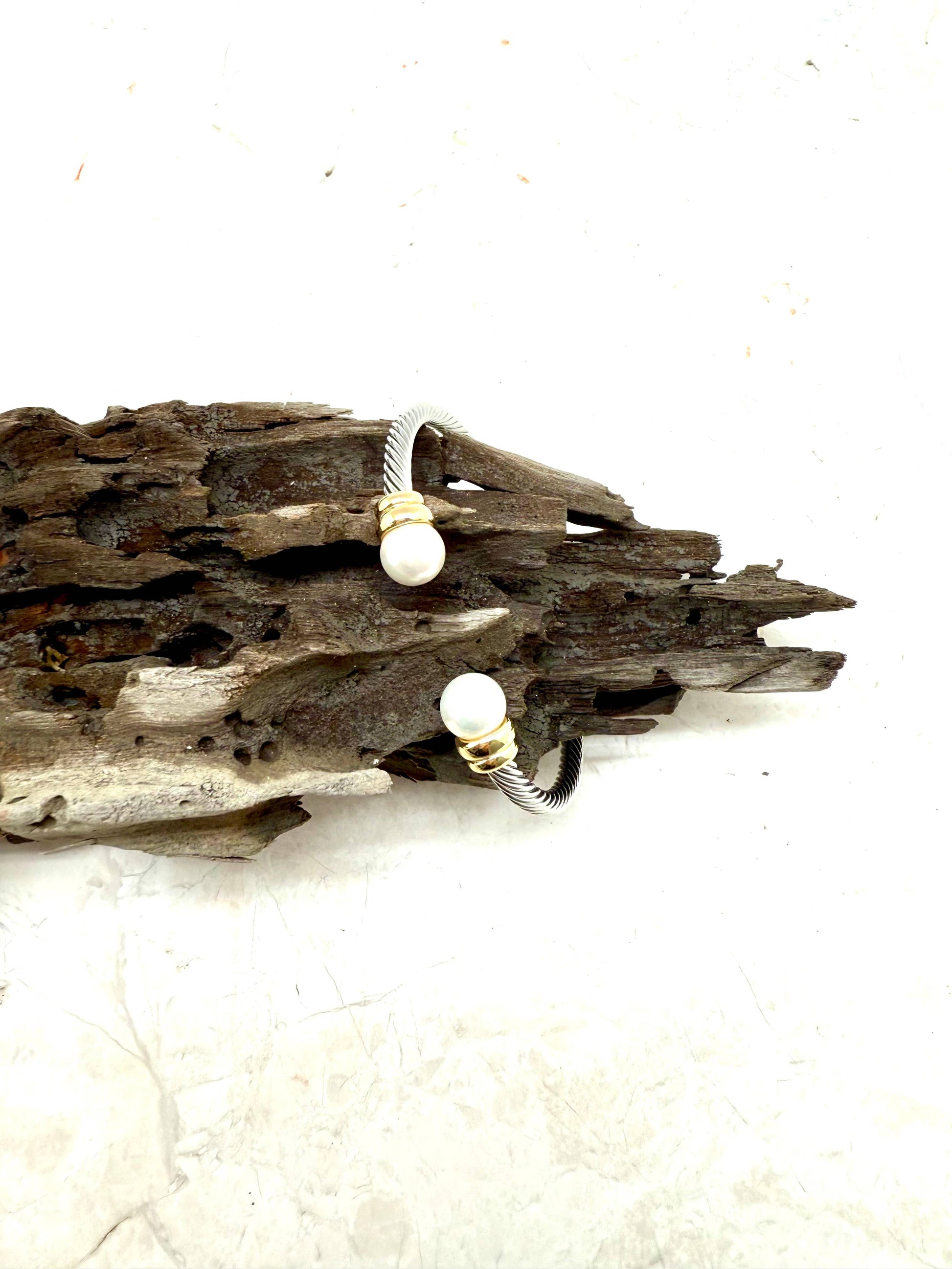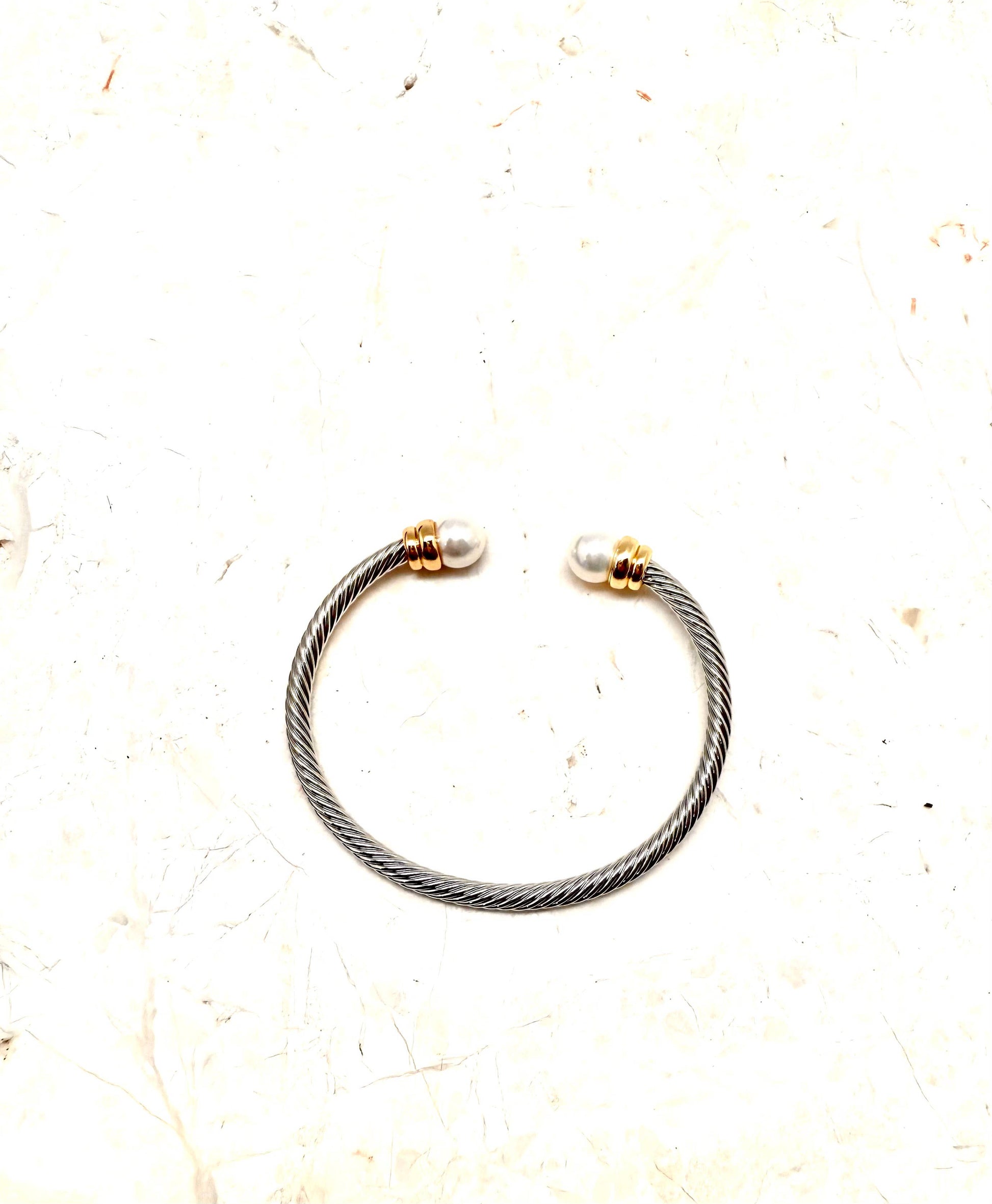 Bracelet Cuff Cable w/GlassPearl Tips w/Gold TipMulti Metal