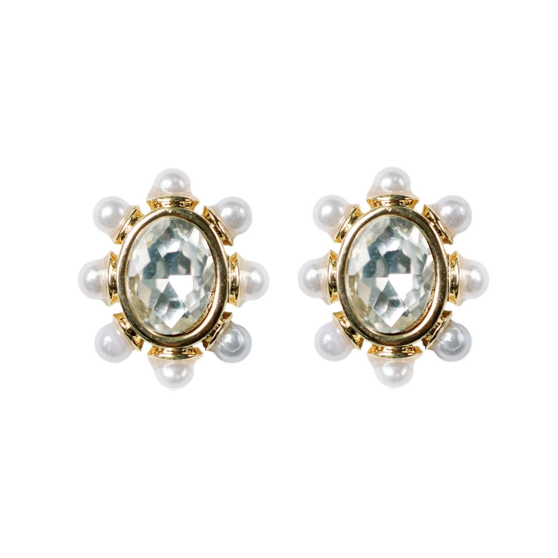 Vintage gold tones are among this year's biggest trends, and we are delighted to introduce our newest stud earrings featuring a crystal center, outlined by delicate pearls. This mini style, perfect for everyday wear, is 1/2 inch in size and perfect for all seasons.