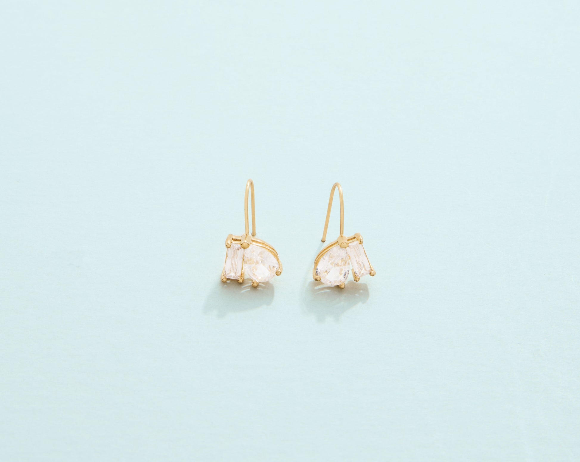 Our sparkling Dazzle Earrings brighten every look with shimmering glass crystals set on a lightweight drop. Designed to shine through everyday wear, exercise, showers and a summer at the beach in tarnish free, water resistant 14kt gold vacuum plating.