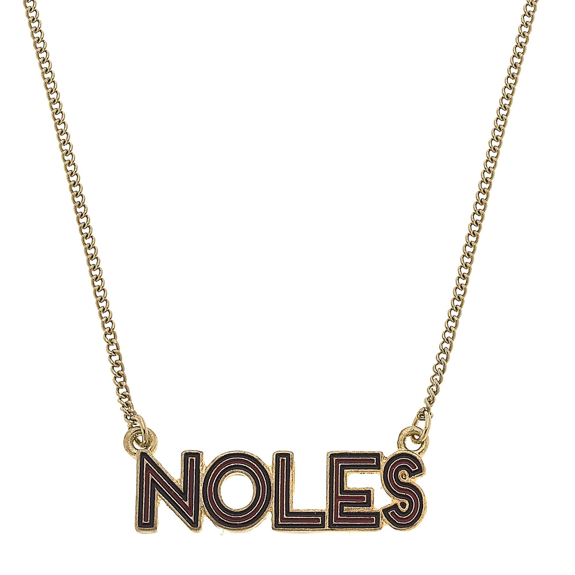 Show your team spirit with this fun Florida State Seminoles Outline Enamel Necklace in Garnet/Black! Perfect for game day or any day, the "Noles" design adds a playful touch to your outfit. Represent your team in style!