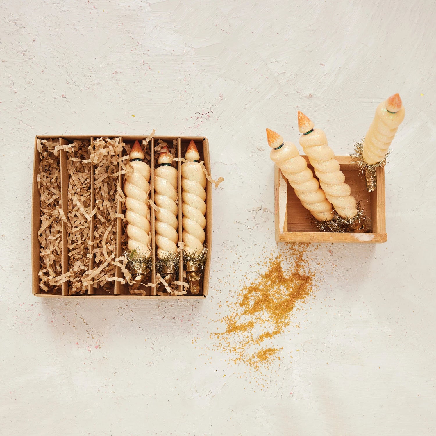 Glass Twisted Taper Candle Clip-on Ornaments, Boxed Set of 6