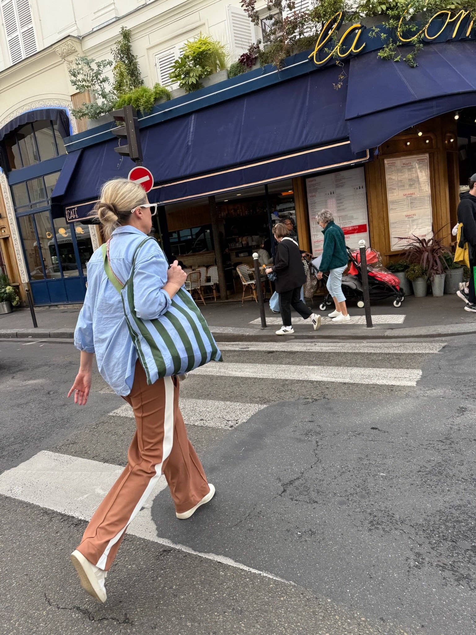 Green Blue Stripe Pocket Shopper