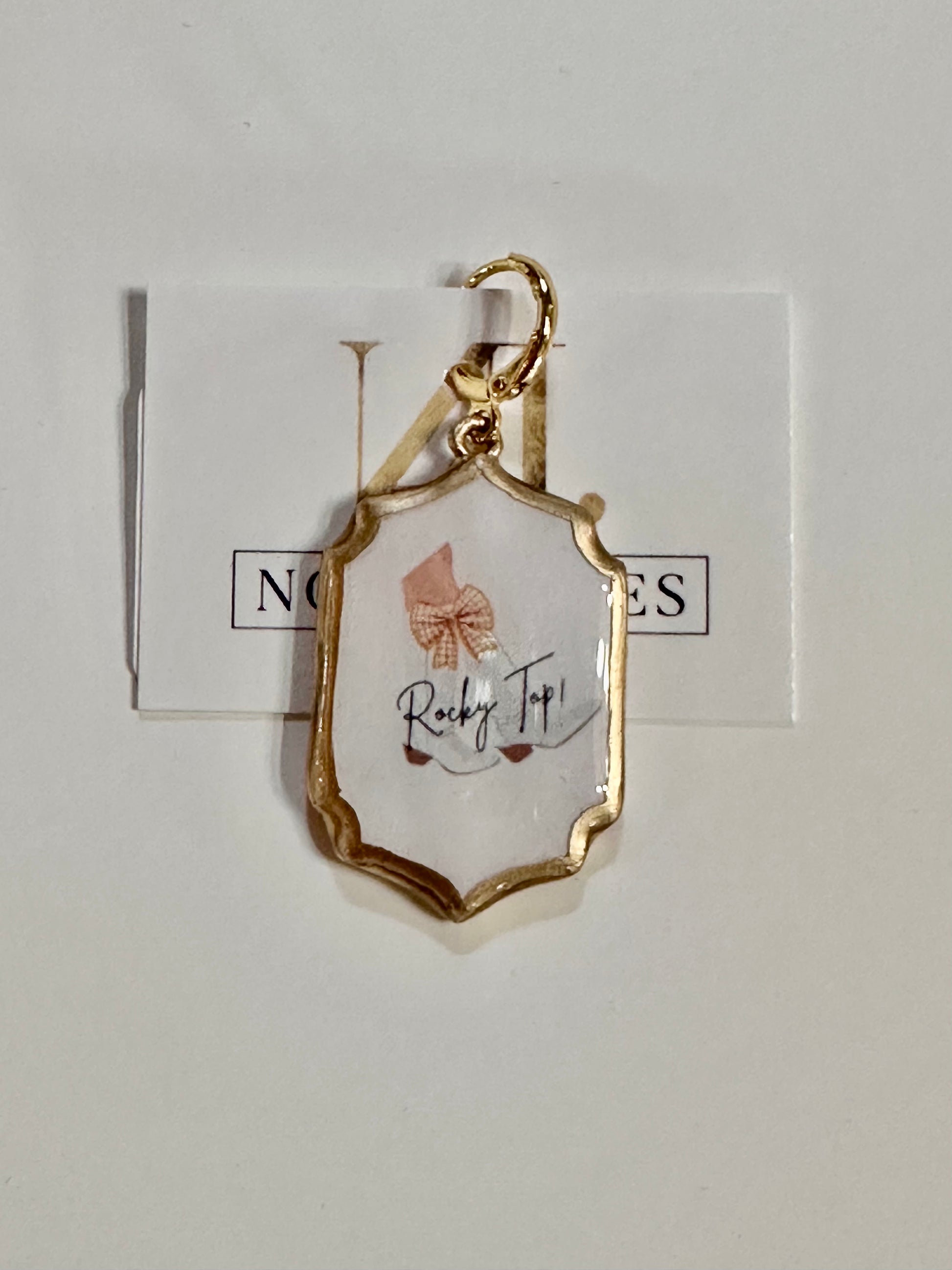 Custom designed exclusively for Nora James! Porcelain charms with a gold frame and glossy finish. Please note that each charm is handcrafted so each piece may have slightly different variations. (Water resistant) 25x35mm