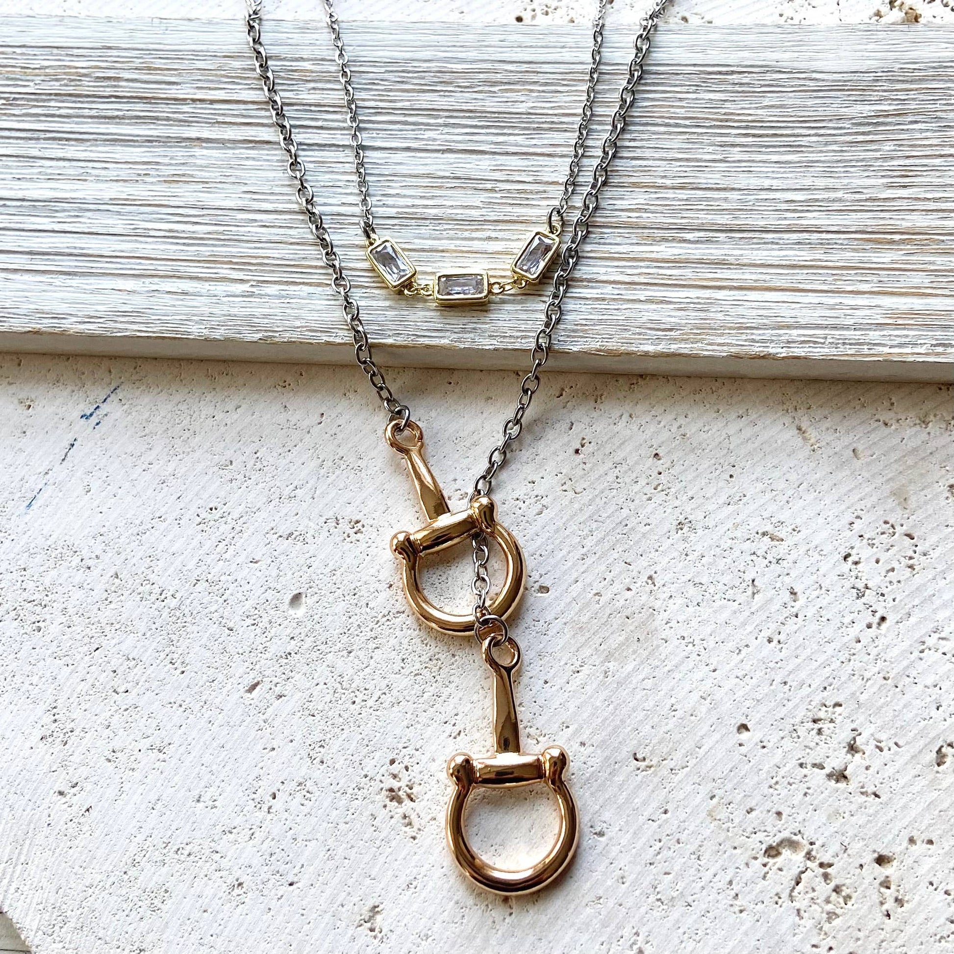Horse bit necklace equestrian jewelry, Derby stirrup: Mixed metals