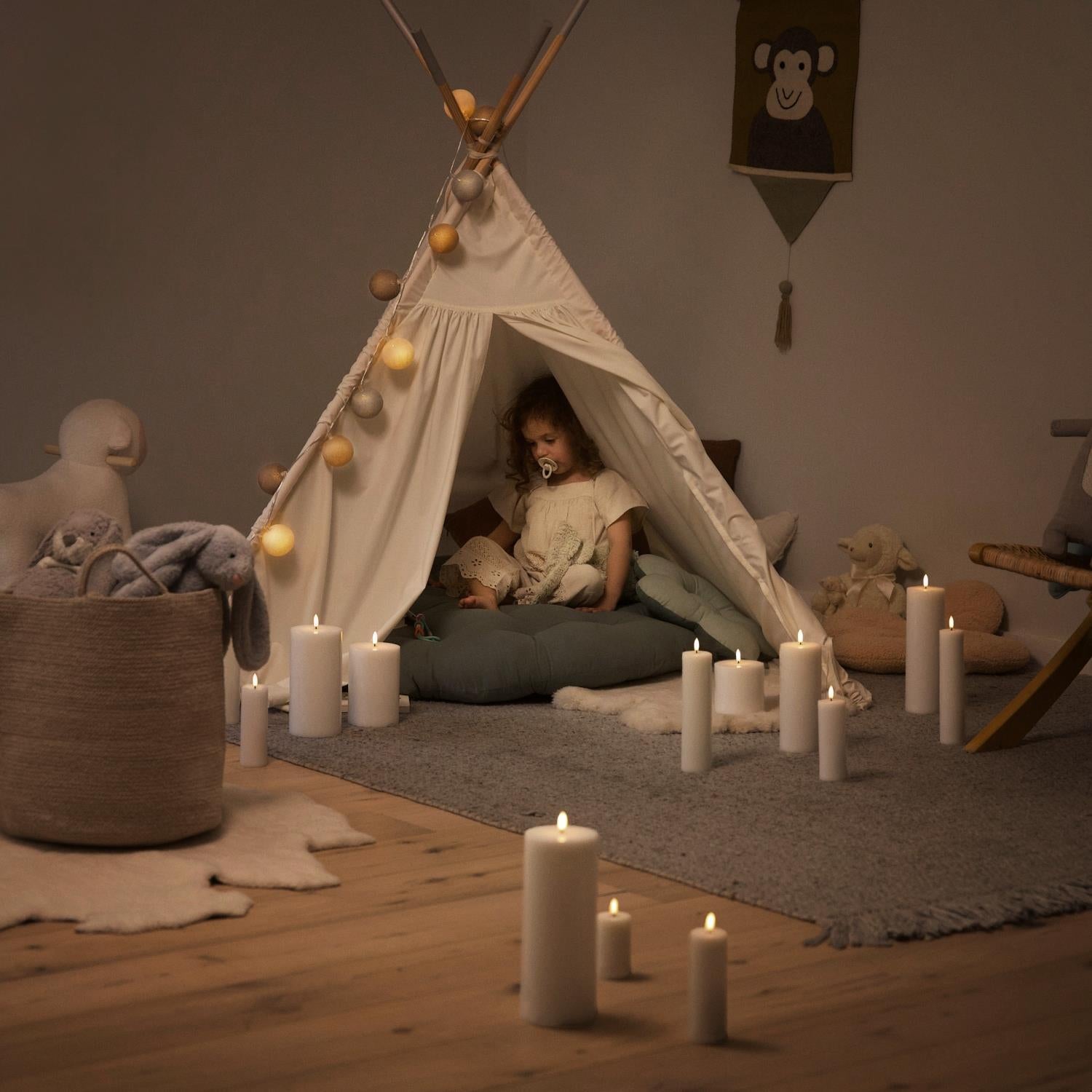Discover the joys of a virgin wax candle, handmade by our skilled artisans and designed specifically to add hours and hours of gently flickering light to your home. Uyuni® LED candles are the safer, healthier choice of candle. These flameless, odourless candles are powered by battery and can be operated manually, by remote control or using the simple timer function.