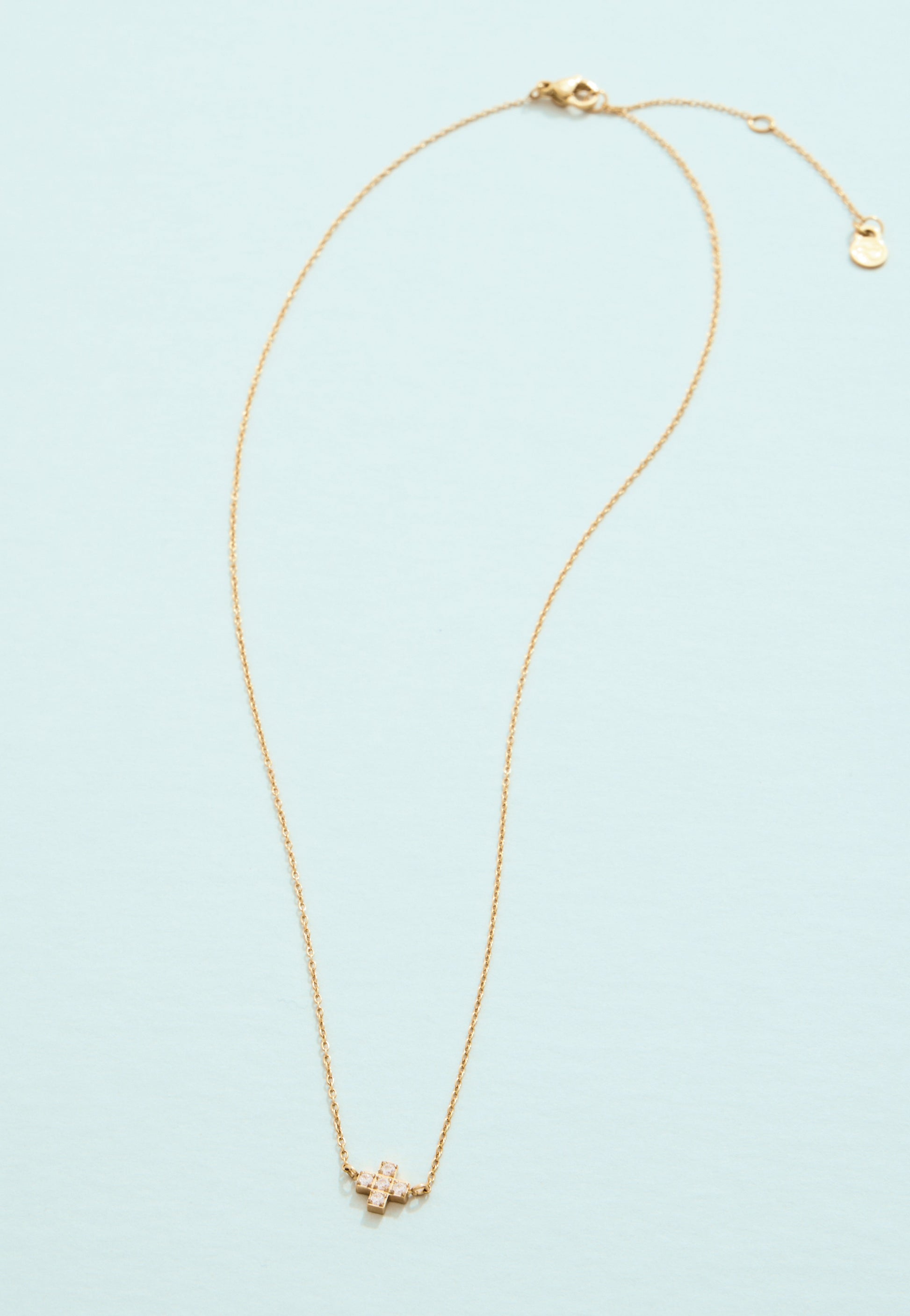 Mini Cross Necklace 16" Crystal