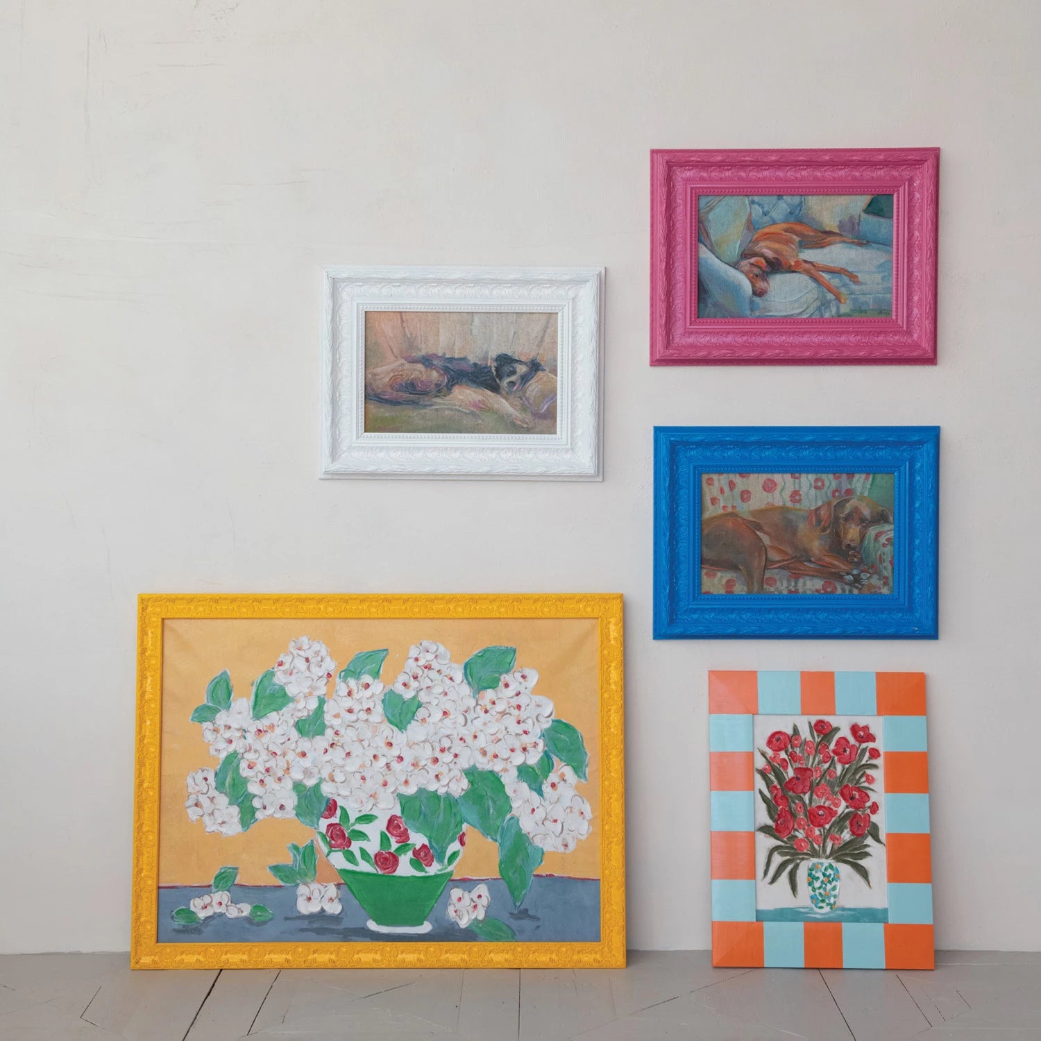 Moulded Composite Framed Canvas Wall Décor w/ Flowers
