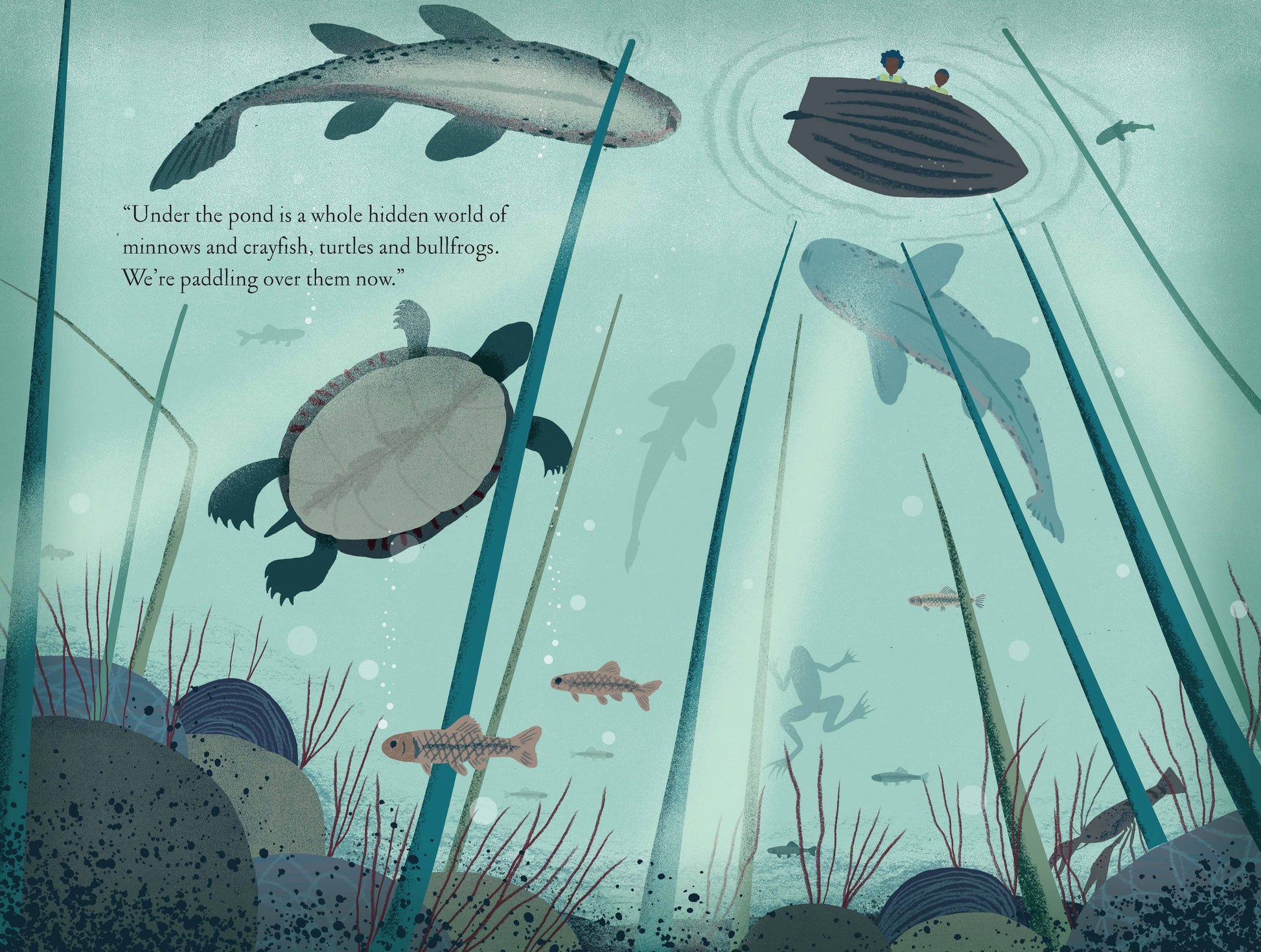In this gorgeous companion to the acclaimed Over and Under the Snow and Up in the Garden and Down in the Dirt, Kate Messner and Christopher Silas Neal bring to life a secret underwater world. In this book, readers will discover the plants and animals that make up the rich, interconnected ecosystem of a mountain pond. Over the pond, the water is a mirror, reflecting the sky. But under the pond is a hidden world of minnows darting, beavers diving, tadpoles growing. These and many other secrets are waiting to be discovered...over and under the pond.