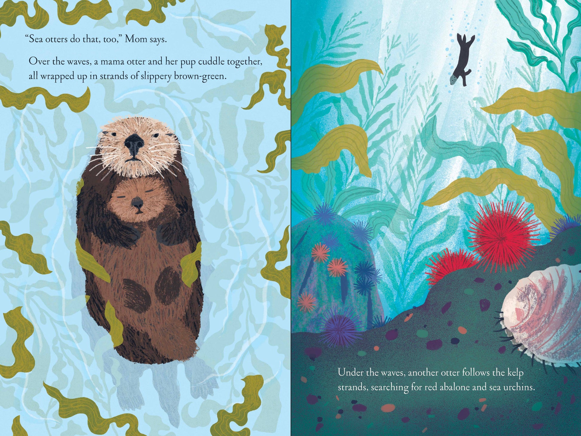 Over the waves, the sea lions bark and seagulls wheel and call. The bay is smooth and bright in the sun. But under the waves, there's a whole hidden forest, full of whales and wolf eels, sardines and sea bass, leopard sharks and luminous jellies, as well as the waving kelp that shelters them all. Discover the magical depths of the kelp forest, and all the fascinating creatures living just a paddle's length away—over and under the waves.
