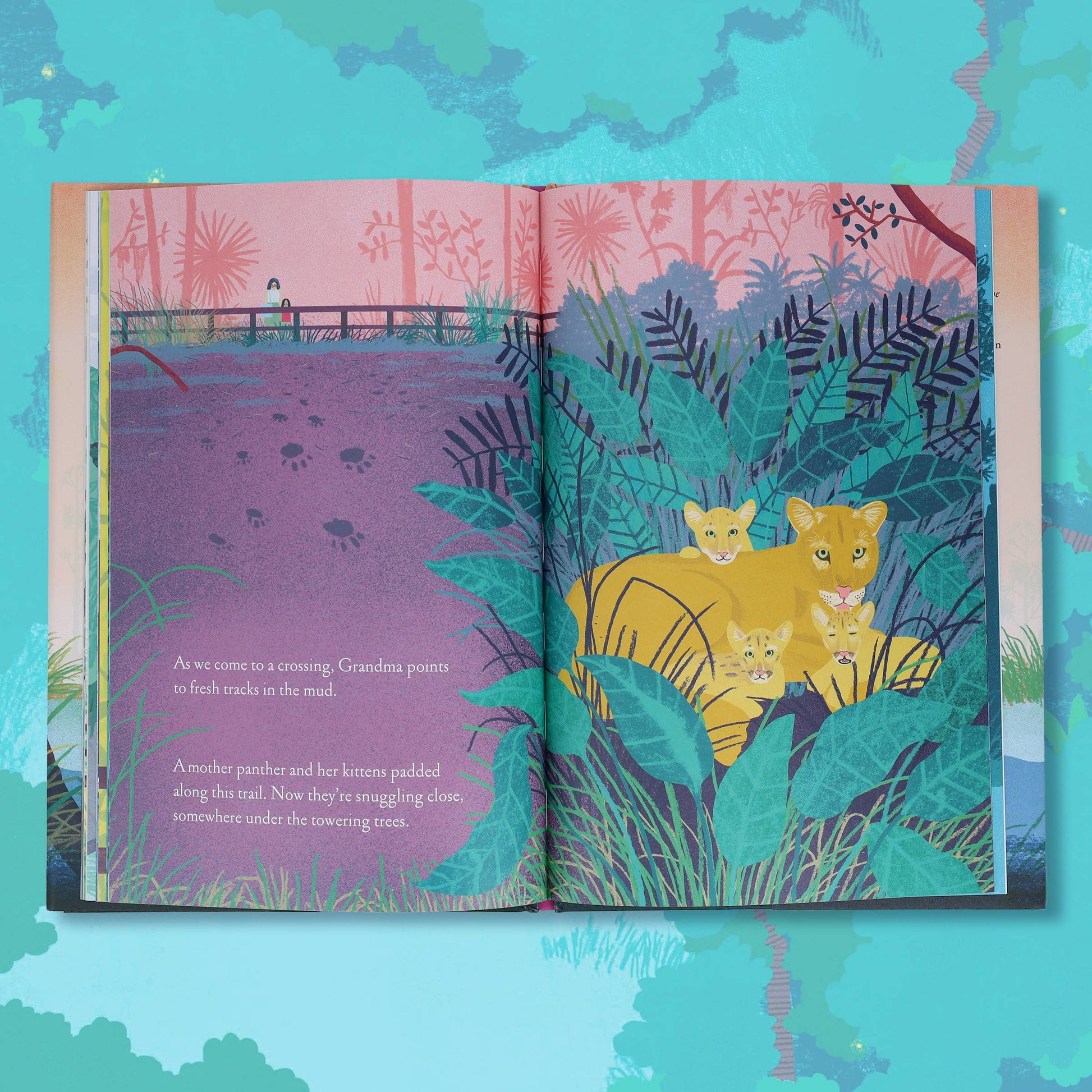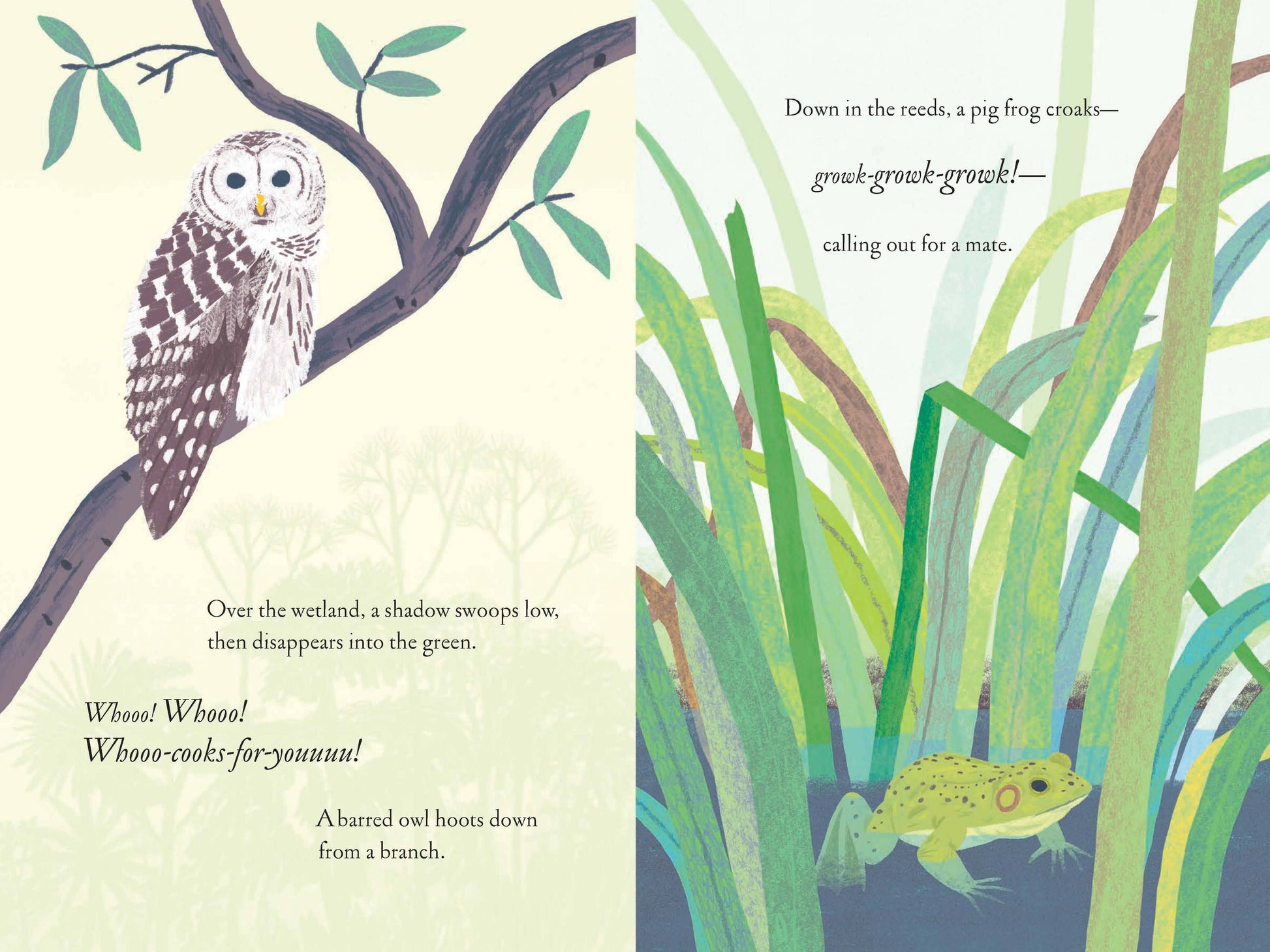 Over the swamp, the barred owl hoots, and the great egret swoops down on snowy wings. The slow mazes of waterways are quiet with the shush of reeds and grasses. But under the swamp’s soft shadows, there’s a whole hidden world of panthers and orchids, red-bellied turtles and raccoons, lurking alligators and singing frogs.