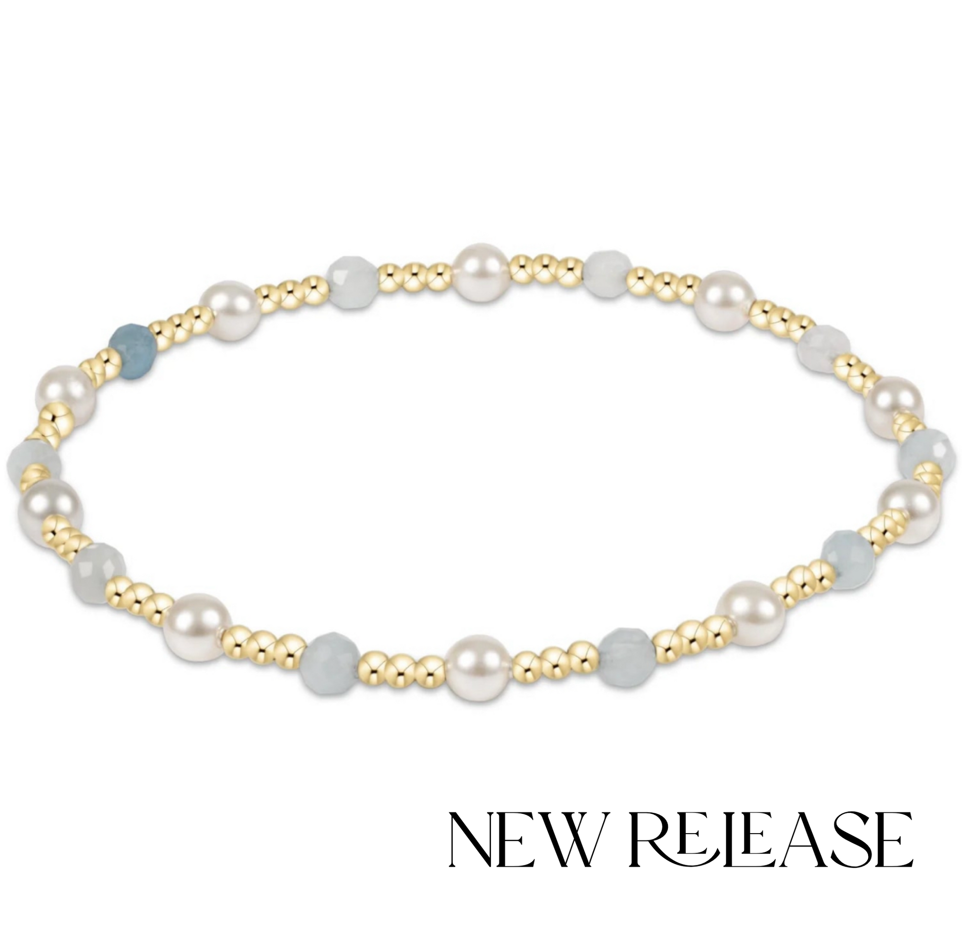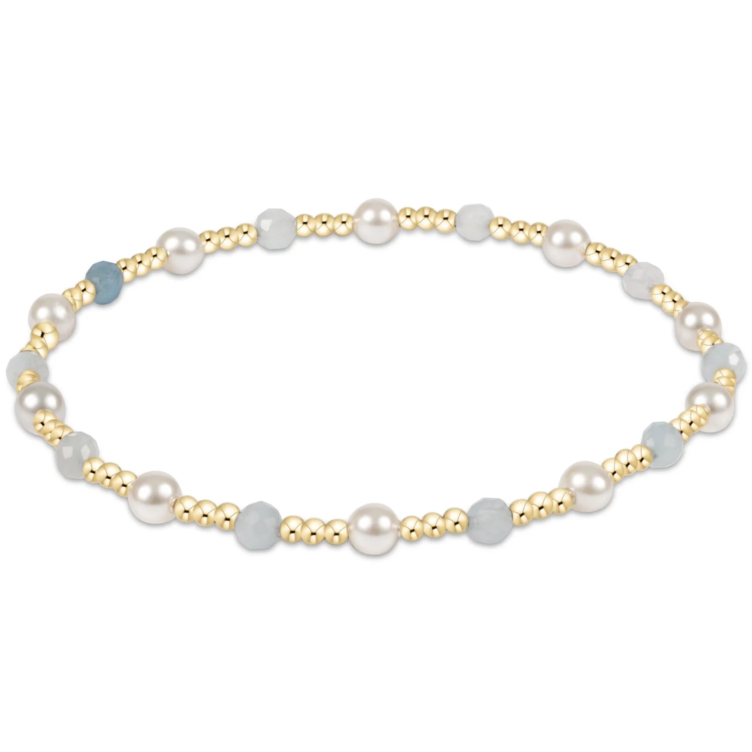 You will fall in love with this classic gold sincerity pattern 4mm bead bracelet with pearl and gemstone.
