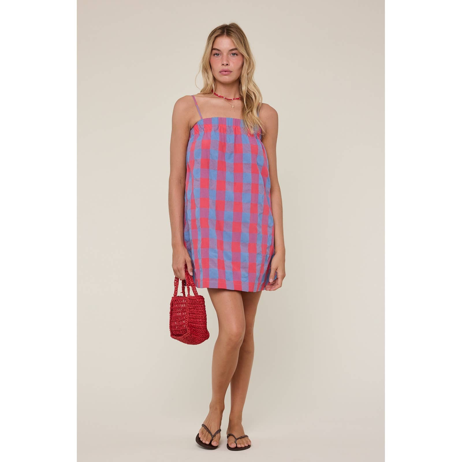 Plaid Cami Mini Dress: CHERRY/BLUE