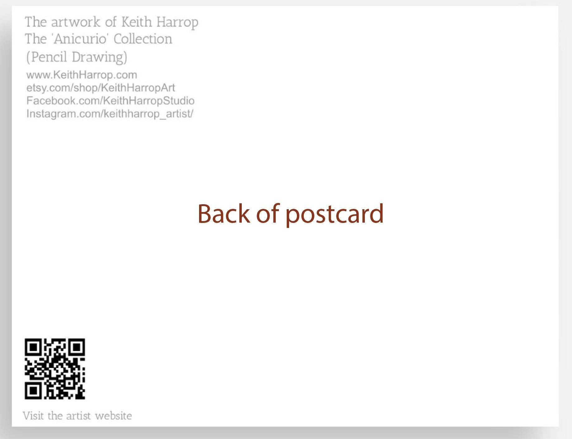This item is individually packaged in a single, clear bag. A postcard from the hugely popular hand drawn, pencil art series, titled 'The Anicurio collection' by British artist Keith Harrop. Each postcard lovingly recreates the vintage, photographic Victorian postcards of the past. If you're an animal lover, or just like the weird, bizarre, and unusual.