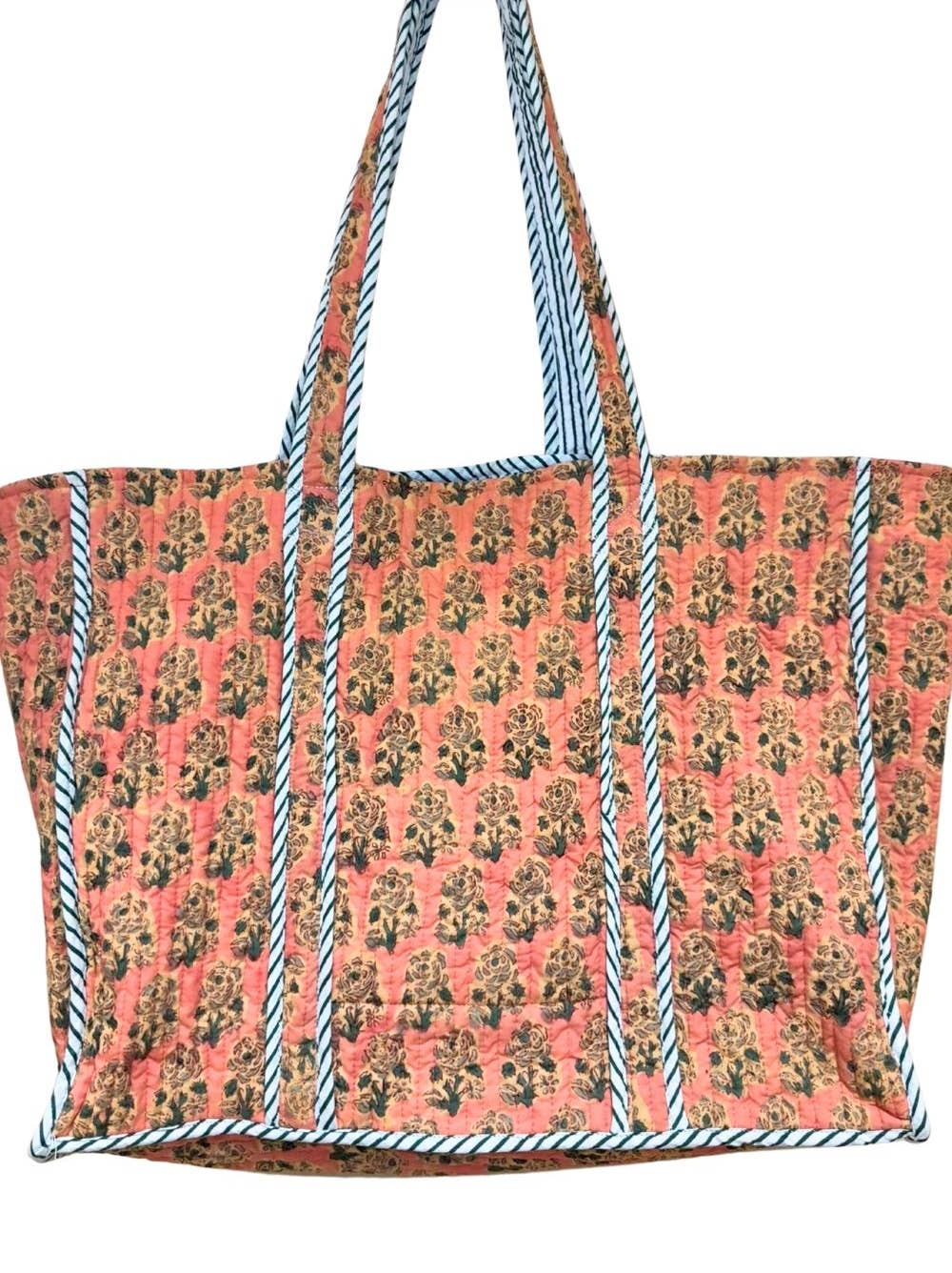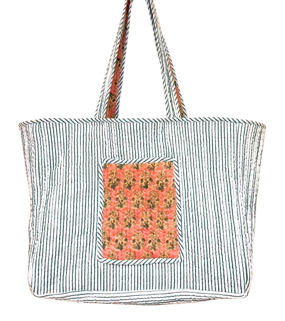 Block printed and reversible market bag. large interior pocket. Made from super soft quilted cotton.