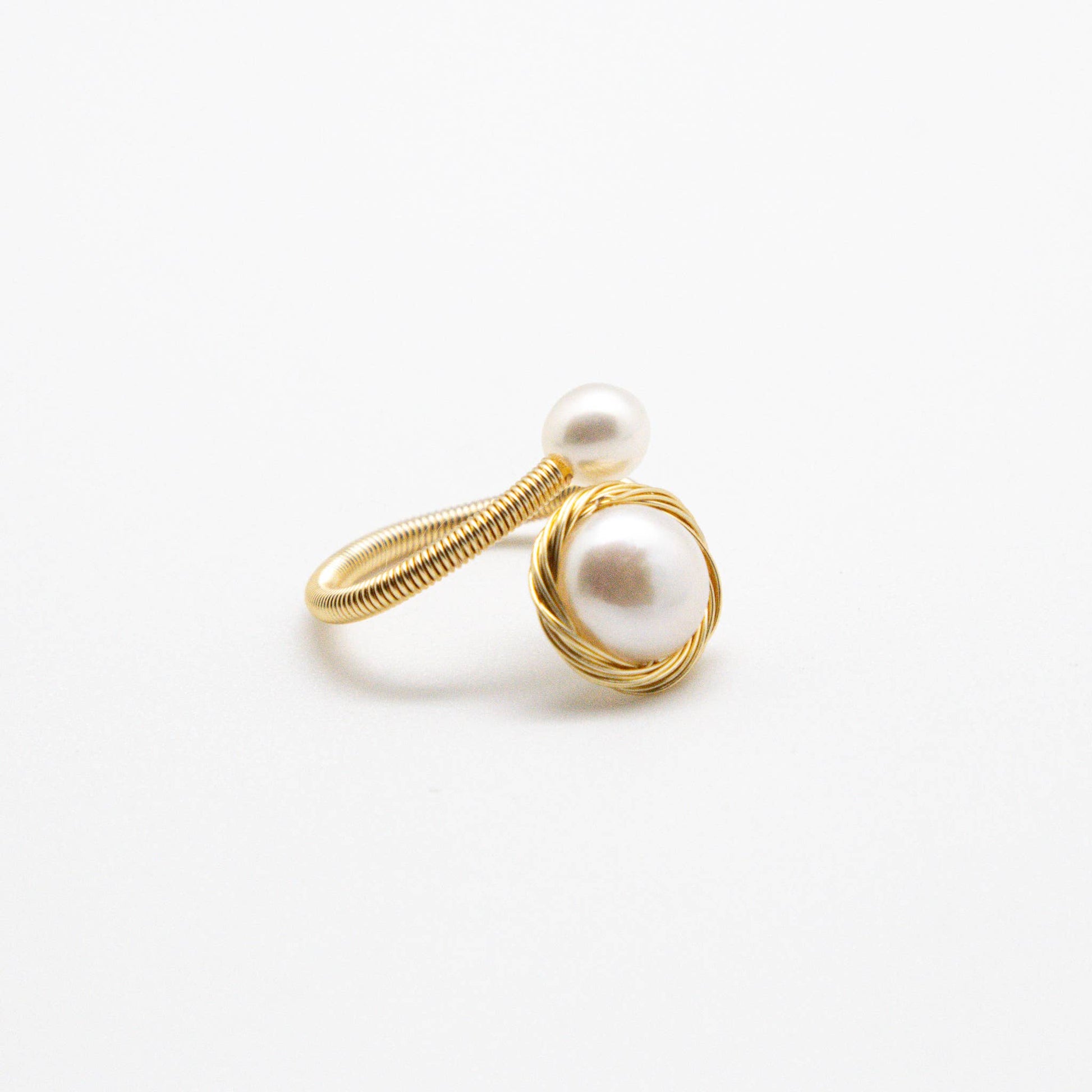 Ring Freshwater Pearl Coin White w/Small Pearl with Gold Wire Adjustable