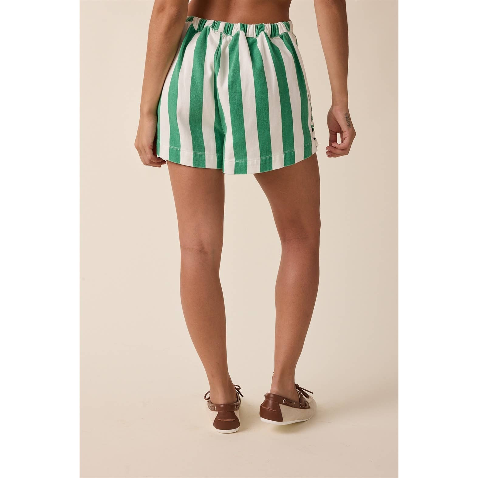 Stirped Denim Shorts W/ Drawstring - Green/White