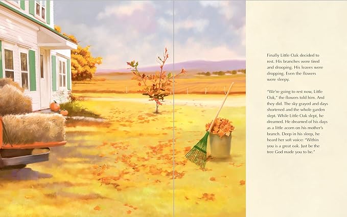 The story highlights the adventure of a sweet little acorn becoming a big, strong oak tree. Readers will cheer on the growing tree when he can't grow oranges like the orange tree or flowers like the rose bush. Children will read with wonder as the tree grows empty branches, and later, a very special purpose is revealed.