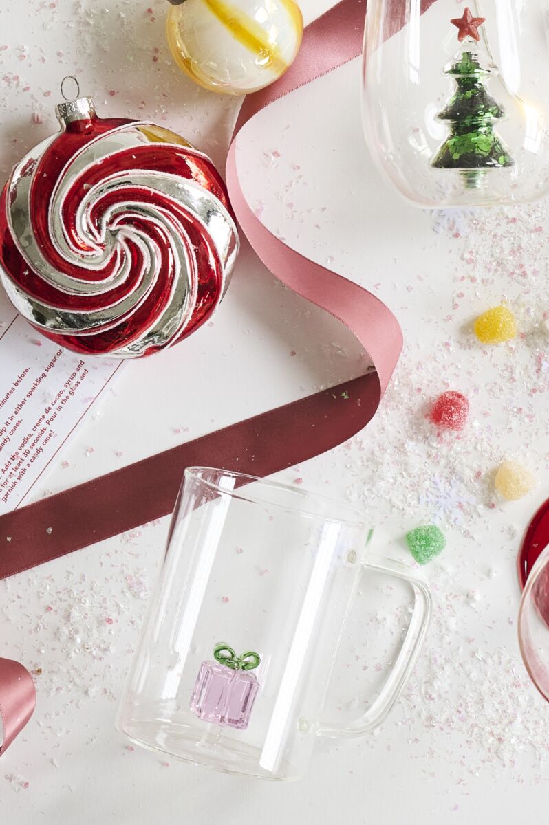 With a surprise at the bottom of this whimsical drinkware, the Trinket Mug will be a favorite for the holiday season. Made of borosilicate glass, this playful, lightweight mug features a miniature green glass tree complete with tiny, dotted ornaments attached to the base. This glass is hand wash only, and best for chilled beverages like eggnog or spritzers. Cheers to drinkware that brings on smiles!